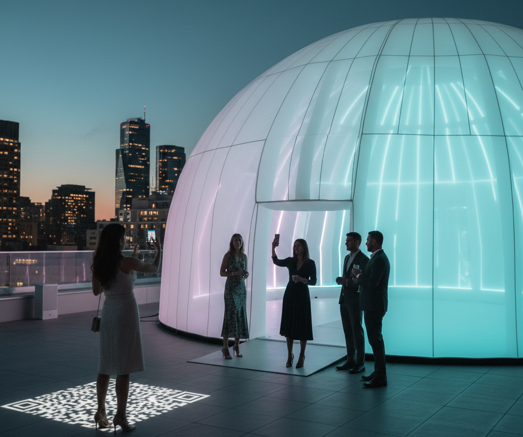 – Ambient audio (brand soundscape, voiceover, product story)Central Inflatable Dome Experience Zone